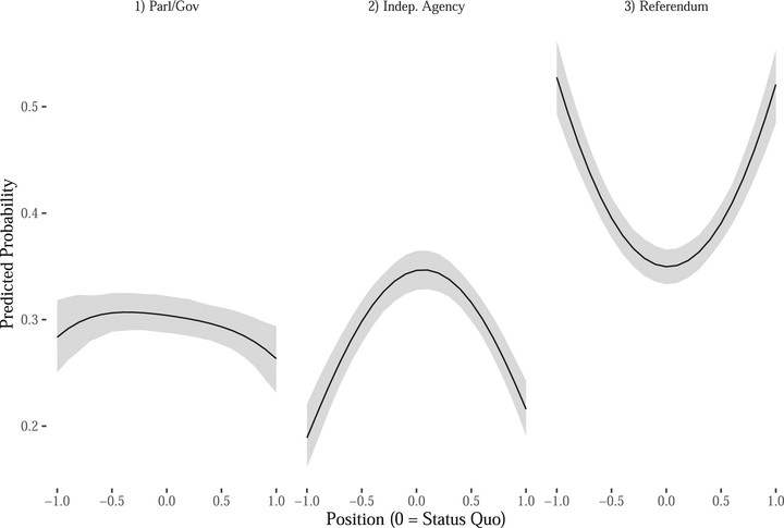 While delegation of policymaking authority from citizens to parliament is the most defining characteristic of representative democracy, public demand for delegating such authority away from legislature/government to technocrats or back to citizens appears to have increased. Drawing on spatial models of voting, we argue that the distance between individuals’ ideal policy points, the status quo, experts’ policy positions and aggregated societal policy preferences can help explain whether individuals prefer to delegate decision-making power away from parliament and, if so, to whom. The effects of individual’s preference distance from these ideal points are likely to be stronger the more salient the policy issue is for the respective individual. We test this argument using survey experiments in Germany, Switzerland and the United Kingdom. The analysis provides evidence for the empirical implications of our theoretical arguments. The research presented here contributes to better understanding variation in citizens’ support for representative democracy and preferences for delegating policymaking authority away from parliament.