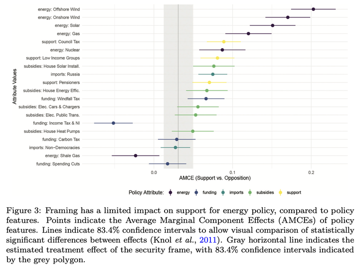 Understanding public support for energy policy is crucial for designing feasible interventions to mitigate climate change and reach net-zero goals. This is particularly the case given the increased salience surrounding energy policy in light of the major disruptions to global energy markets generated by the 2022 Russian invasion of Ukraine. Combining framing and conjoint experiments, I examine how framing and policy design shape public support for energy policy responses to this crisis in the UK. Results show that the public has strong preferences over specific policy features, supporting investment in renewables, reductions of energy imports from Russia and non-democracies, and policies that shield vulnerable groups. While security framing increases support for energy policy, its effect is smaller than that of policy design, and it has little impact on policy design preferences overall. The findings suggest that substantive policy designs remain crucial for generating public acceptance of energy policy, even in times of crisis.